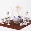 景德镇陶瓷厂家专业生产定制自动酒具,在这个酒文化已根深蒂固的国家,酒是大小筵席都不可缺少的,然在品饮酒的同时自动酒具也是必备的,自动酒具大大提升的酒的品质和档次,酒入口即回味无穷,自动酒具亦让人赏心悦目爱不释手。我厂有多款的自动酒具可以选择,造型优美,设计新颖。自动酒具材料采用的是高岭土,经1300多度高温烧制而成,是完全瓷化的陶瓷工艺品。自动酒具的优点有许多,完全瓷化的自动酒具对酒无伤害,自动酒具长年盛放酒水对身体没有任何影响,自动酒具是目前酒具中更安全的。自动酒具不但具有实用性,同时也具有一定的文化内涵。现在随着广大群众的生活品质的提高,对物质的要求也越来越高,一套好的自动酒具更能提升自身的品位自动酒具在不用时,可陈设在柜台上,亦是一件工艺器具。自动酒具也可以作为礼品赠送给亲朋好友,为彼此的情谊再添一彩,自动酒具也可以在推广活动中作为赠品,它能为您带大意外收获。青花自动酒具是运用天然钴料在白泥上进行绘画装饰,再罩以透明釉,然后在高温1300摄氏度上下一次烧成,使色料充分渗透于坯釉之中,呈现青翠欲滴的蓝色花纹,显得幽倩美观,明净素雅。青花是我国民族特色的瓷器装饰,是釉下彩瓷的一种,也是我国陶瓷装饰中较早发明的方法之一。清代龚轼在他的《陶歌》中这样称赞青花瓷:“白釉青花一火成,花从釉里透分明。可参造化先天妙,无极由来太极生”。